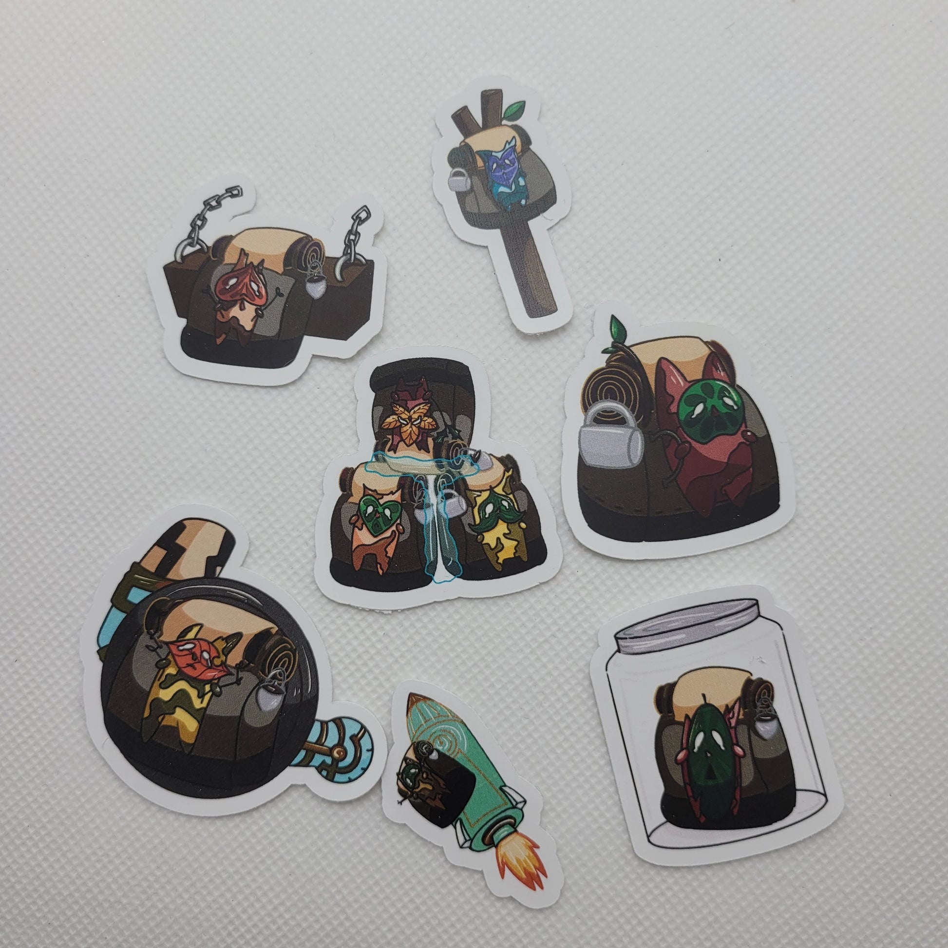 7 stickers total. All waterproof. Each sticker is handmade, hand printed, and cut with a cricut.